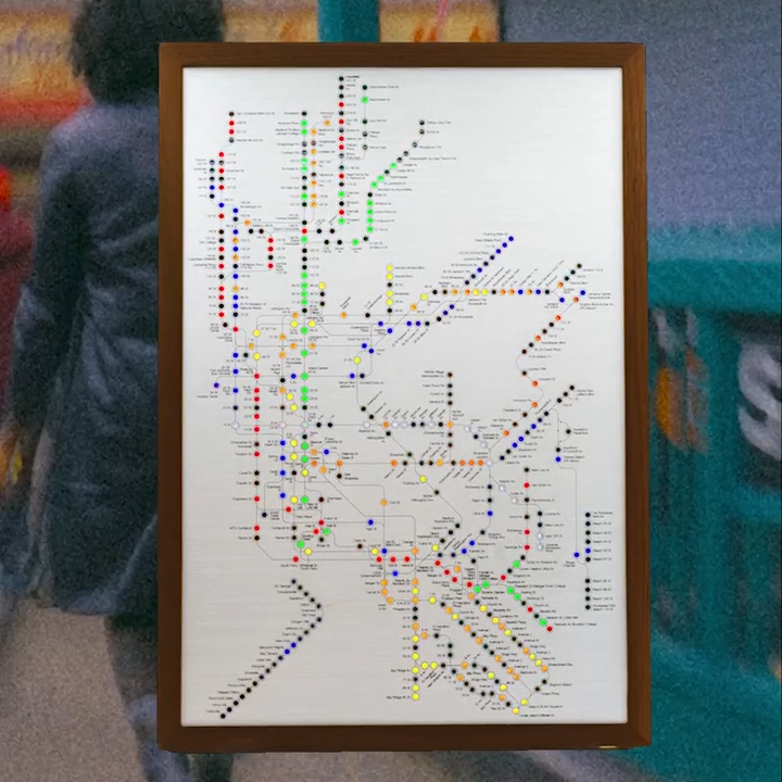 Displaying the real-time location of every train in every station in the city. Brightness, update frequency, color, and other settings are customizable.